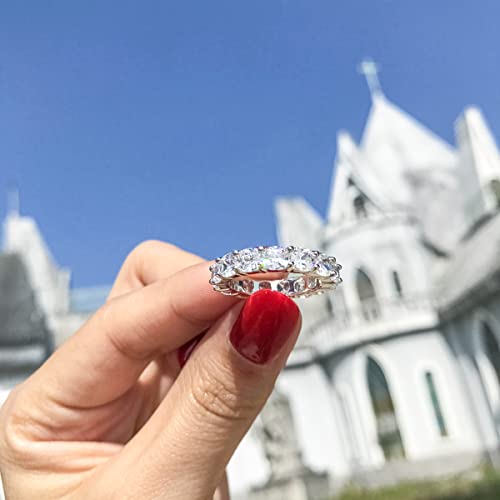 AINUOSHI 925 Sterling Silver Ring 4mm Round/Cushion/Heart Cut Cubic Zirconia CZ Fashion Eternity Engagement Wedding Band Ring (Cushion-Cut, 4)