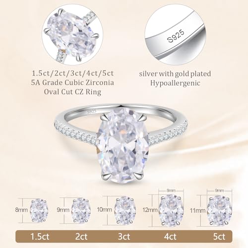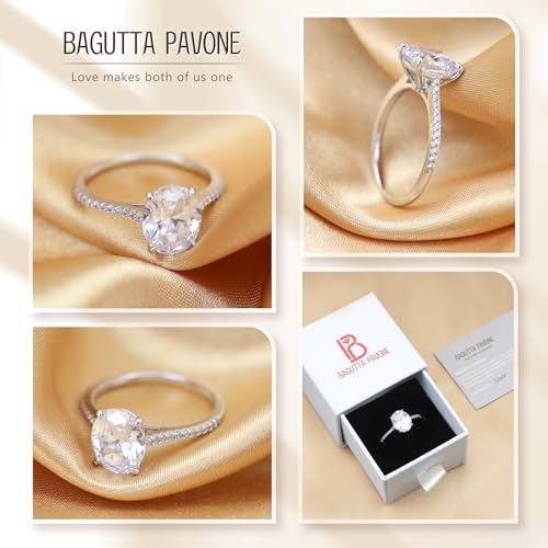 BAGUTTA PAVONE 1.5CT CZ Oval Cut Engagement Rings for Women,Women’s 925 Sterling Silver Solitaire Wedding Bands Engagement Promise Rings for Her with 18K White Gold Plated Size 7