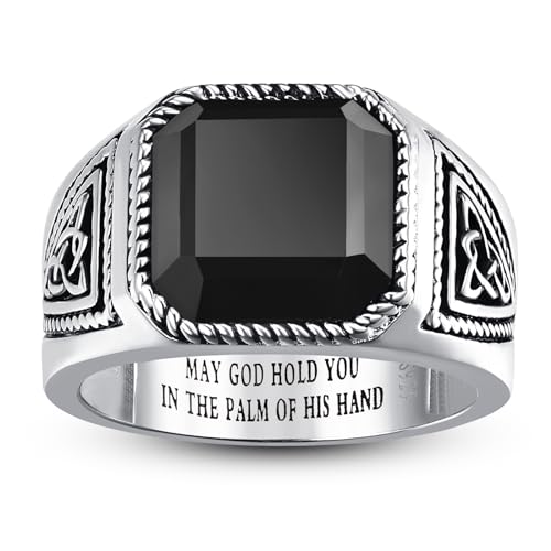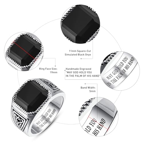 BONLAVIEGEM Vintage Mens Black Onyx Rings, 925 Sterling Silver Mens Ring, Simulated Obsidian Ring Celtic Cocktail Pinky Thumb Band for Dad Father Jewelry Gift Size 10