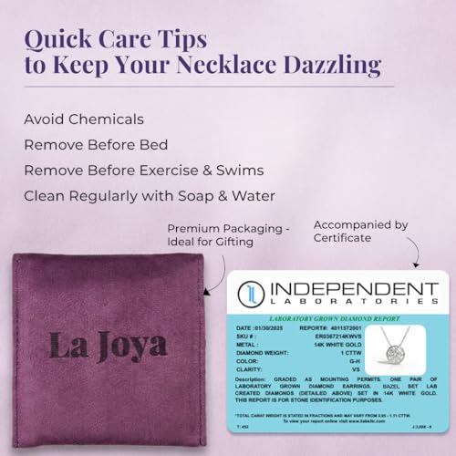 Diamond Bezel Necklace | 1CT Lab Grown Diamond Necklace | Genuine 10 KT White Floating Gold Solitaire Pendant | GH VS SI Certified By Independent Laboratories | Ideal Valentines Day Surprise for Her