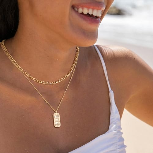 Fettero Layered Initial Necklace for Women – 14K Gold Plated Name Necklace Chain Choker with Personalized Initial Tag Pendant