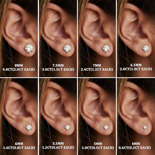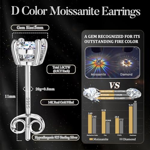 Moissanite Stud Earrings : 18K White Gold Plated Solid 925 Sterling Silver Earring Hypoallergenic Dainty Flat Back Stud Earrings Jewelry for Women Men D Color VVS1 Clarity 1ct