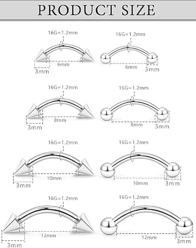 - Precise Measurements: Gauge: 16G (1.2mm); Wearable Bar Length: 6mm(1/4"), 8mm(5/16"), 10mm(3/8'), 12mm(1/2"); Ball Size: 3mm;, making it easy to find the perfect fit.