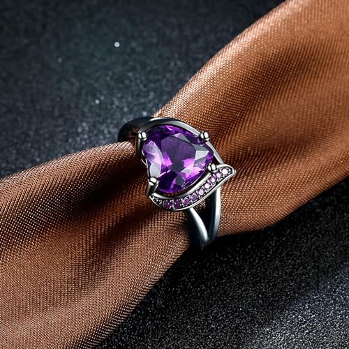 QOBEBOTA Engagement Rings for Women Purple Amethyst Heart Zircon Promise Rings for Her Womens Rings Black Gold Gothic Rings Valentines Day Gifts Wedding Rings Size 9 Ring Statement Rings for Women