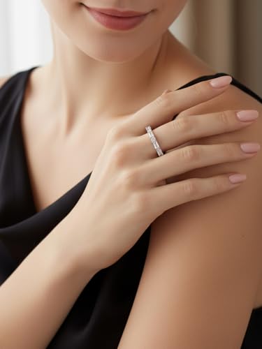 - 【Stackable Eternity Ring】- Our thin moissanite ring can be worn perfectly stacked with your existing rings to enhance your look. The alternating emerald-cut and round moissanite stones symbolize eternal love and fashion, adding a touch of elegance to your ring.
